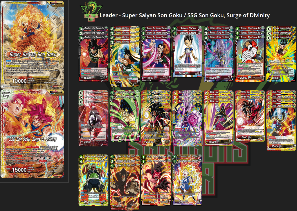 As we all know, the “machine” tends to theorize and test hundreds, upon thousands, of iterations of decks before the best version comes to light. This statement isn’t meant to lead you to the version posted above being the best version, but really I just want to call attention to the nuance of Bulma + SBWG and how it has a much needed way of both creating urgency for the opponent and allowing you to draw more of your threats/answers more often.