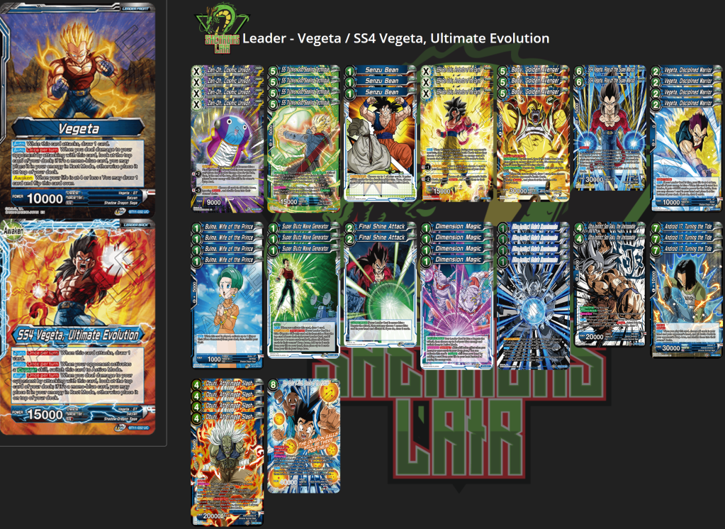 SS4 Vegeta is definitely going to be a leader that people turn to in the early weeks of the format since it is so unique and offers you access to some very powerful plays. There is so much room for exploration and innovation with this set that this is possibly the most excited I have ever been for a set release. It is great to finally have true ramp back again along with all of the new archetypes that Vermilion Bloodlines is offering us. If you get a chance I would love to see the lists you’re all working with, feel free to comment a link to them down below or just send them to us via the contact page.